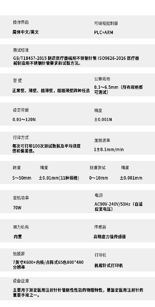 薄壁注射针在实际使用中,若断裂力不达标,可能在穿刺过程中发生断裂,给患者带来严重的安全隐患。因此,准确测量其断裂力能有效保障医疗操作的安全性。
